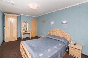Большой стильный двухкомнатный номер, прекрасно подходит для романтического отдыха влюбленных или семейной пары. Каждый номер оборудован комфортной мебелью и необходимой бытовой техникой. Зона сна оборудована двуспальной кроватью, зона отдыха - мягким уголком. Максимальная вместимость номера 4 человека. В каждой комнате плазменная панель и выход на балкон. На балконе имеется сушилка для белья, стол и два кресла. Для проживающих в номере данной категории предоставляется питание за отдельным двухместным столом у окна с видом на сосновый парк.